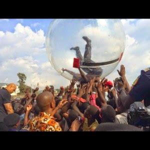 Senegal-born and American R&B superstar — Akon has been accused of going to extreme lengths to avoid catching Ebola during a concert in Africa.The ‘Locked Up’ singer climbed inside the airtight blow-up during a performance in Goma, in the Democratic Republic of Congo, on Sunday and rolled over the crowd, pushed along by the outstretched hands of 60,000 screaming concert-goers.